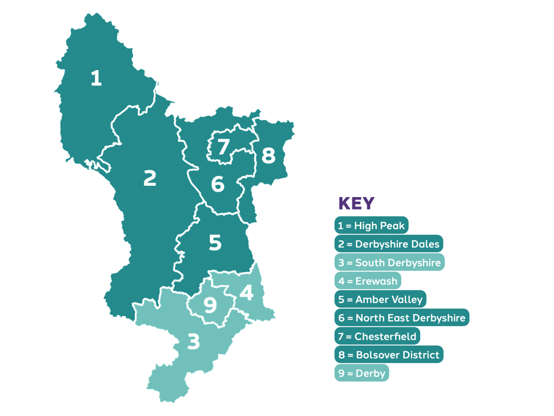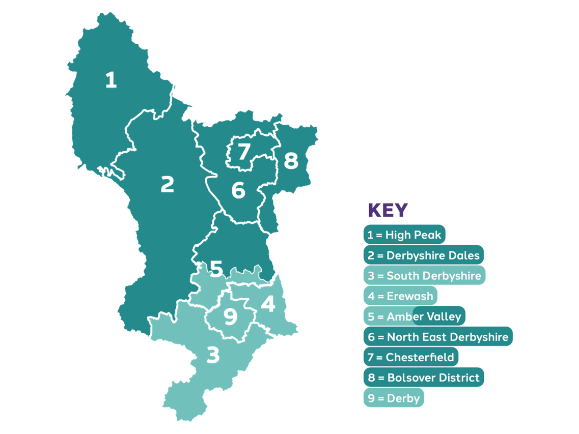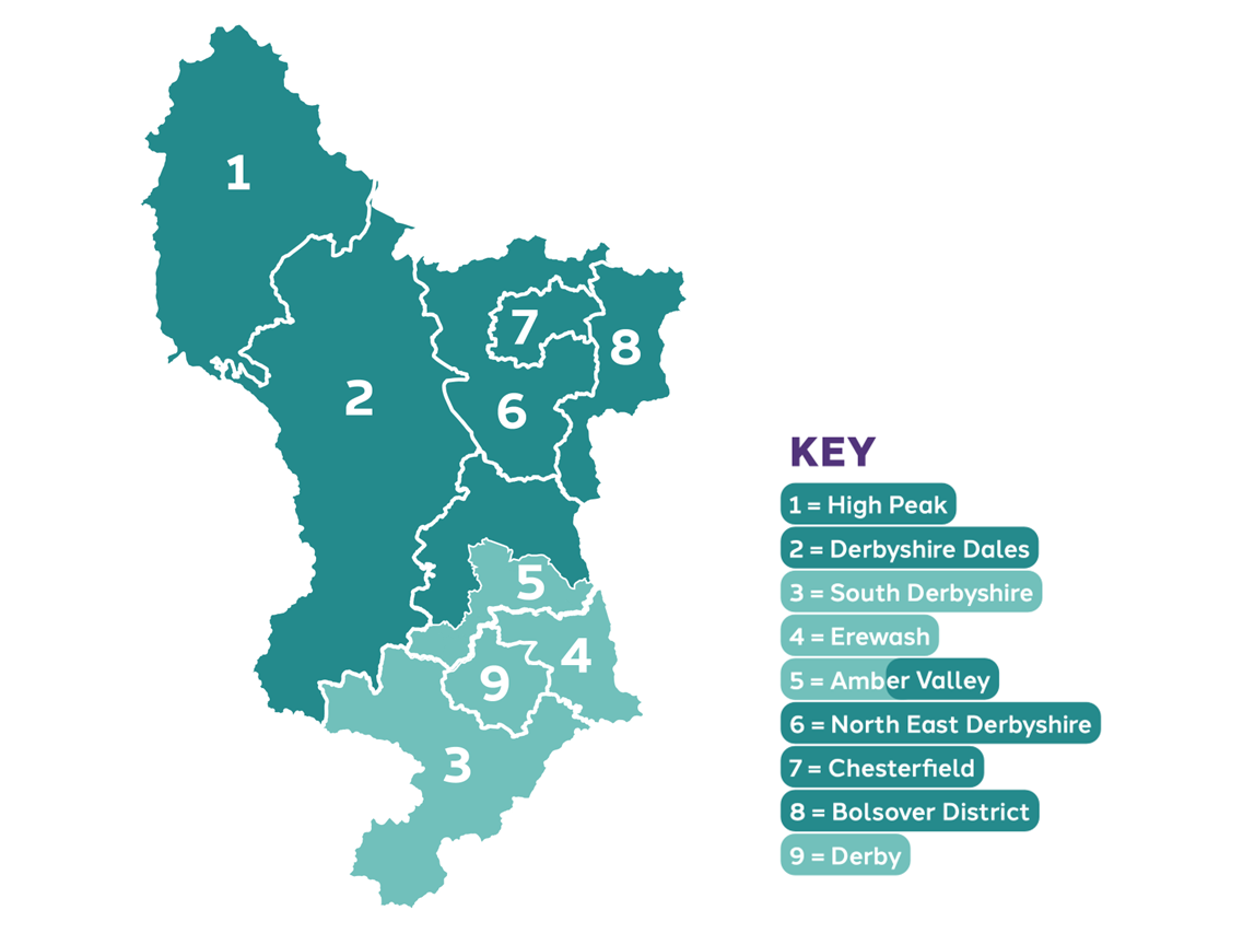 Big enough to deliver but close enough to listen and respond to local needs. Derbyshire stretches from the borders of Manchester to Leicestershire, encompassing diverse communities from rural Peak District villages to market towns and the city of Derby.