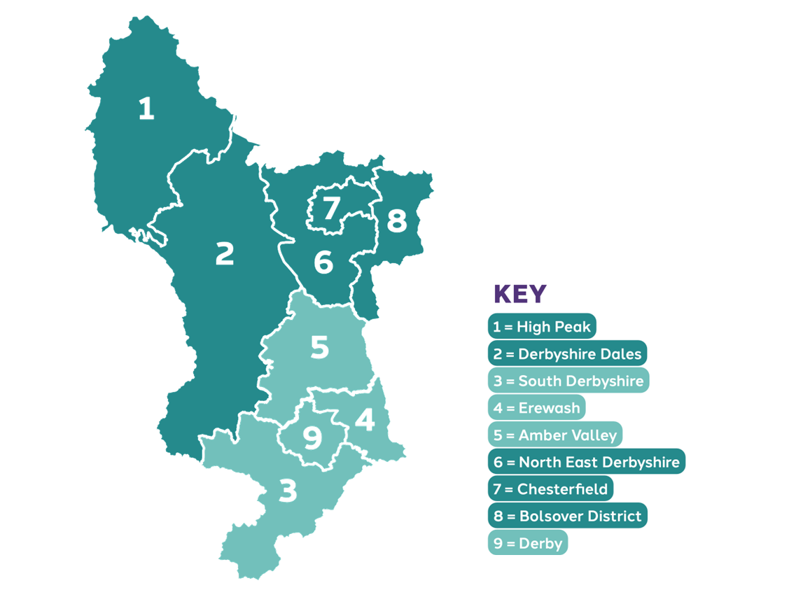 The southern council includes Derby City, South Derbyshire, and Erewash.